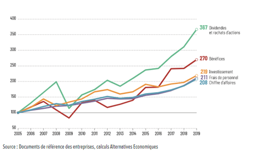 Ces hypothèses sont confirmées par une publication de la banque de France de fin 2019 intitulé « Le recours croissant des grands groupes français à l’endettement : une stratégie de financement qui montre ses limites ».