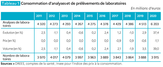 Nul besoin d’être très inventif pour trouver un écho très médiatique. La consommation d’examens de biologie médicale a en effet augmenté de +37.4% en valeur en 2020.