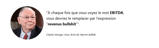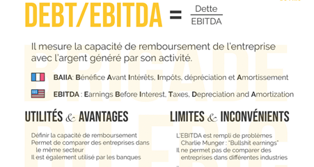 Souvent pris comme justificatif à l’exigence de baisse de nomenclature des actes en biologie médicale, l’EBE (excédent brut d’exploitation) ou EBITDA est un indicateur de performance économique à produire un revenu financier (le « cash flow »). Il exclue néanmoins la politique de financement (remboursement d’emprunt), l’impôt sur les sociétés, la rémunération des actionnaires ou encore les dépenses d’investissement. Dans la situation où une majorité de groupe de laboratoire ont fait appel à la dette LBO pour se consolider et qu’il s’agit d’un secteur nécessitant un cycle d’investissement fréquent, il n’apparait pas être l’indicateur le plus judicieusement choisi pour rendre compte de la bonne santé financière de l’ensemble des LBM. Par ailleurs, il s’agit d’une somme, exprimée en valeur absolue, rendant compliquée toute comparaison entre secteurs d’activité.