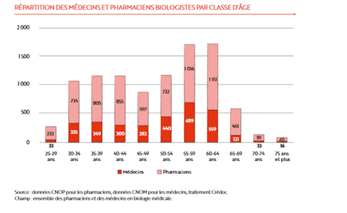 - Une démographie déclinante (source section G du CNOP dans sa dernière communication annuelle) avec des départs non compensés par un numerus clausus suffisant -15% de pharmaciens biologistes entre 2009 et 2021 ; 43% des pharmaciens biologistes et 54% des médecins biologistes sont âgés de 50 ans et plus ;