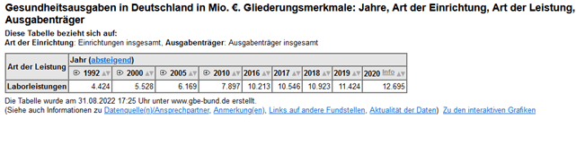 Évolution des dépenses de biologie médicale en Allemagne