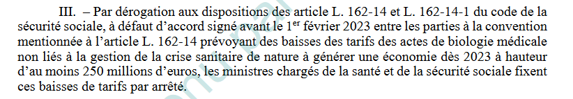 - Création d’un forfait post analytique versé aux biologistes médicaux (honoraires)