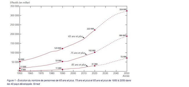 Les causes de cette progression sont structurelles : augmentation des pathologies chroniques (diabète, maladies cardio-vasculaires, HTA…) rendant un suivi biologique nécessaire et surtout le vieillissement structurel de la population (les baby boomers sont entrés dans leur 70ème année depuis bientôt 10 ans), un phénomène donc qui devrait s’accentuer dans les 20 prochaines années et peser sur les dépenses de façon majeure. La France connait en effet une augmentation soutenue de sa population âgée, avec une accélération importante depuis 2011 : la part des plus de 65 ans représentera 28 % de la population en France en 2050 et la part de la population âgée des plus de 80 ans doublera. Le vieillissement de la population accroîtra la demande de services de santé, en particulier pour les soins de longue durée et la prévention.